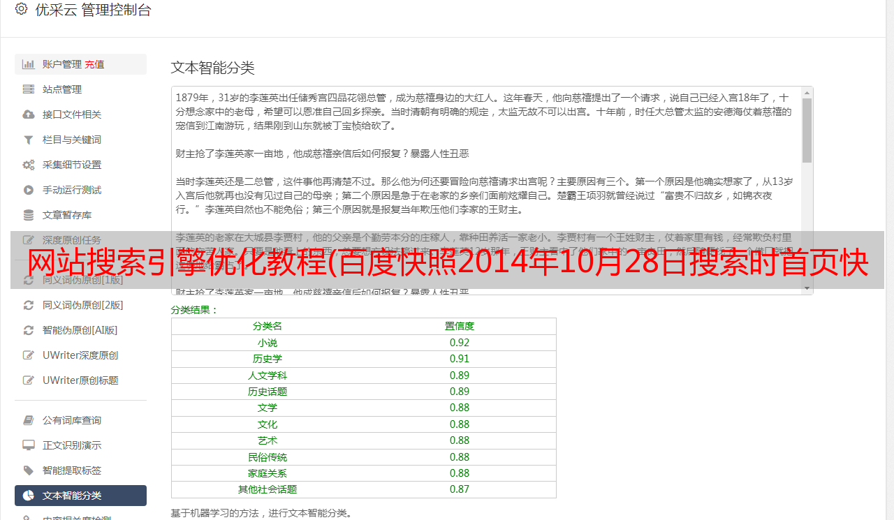 优采云 发布时间: 2022-01-30 06:00网站搜索引擎优化教程(百度快照2014年10月28日搜索时首页快照对比)