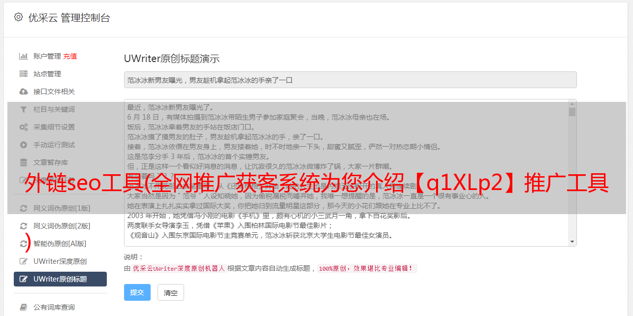 全网推广获客系统为您介绍邵阳靠谱seo外链推广工具价格【q1XLp2】