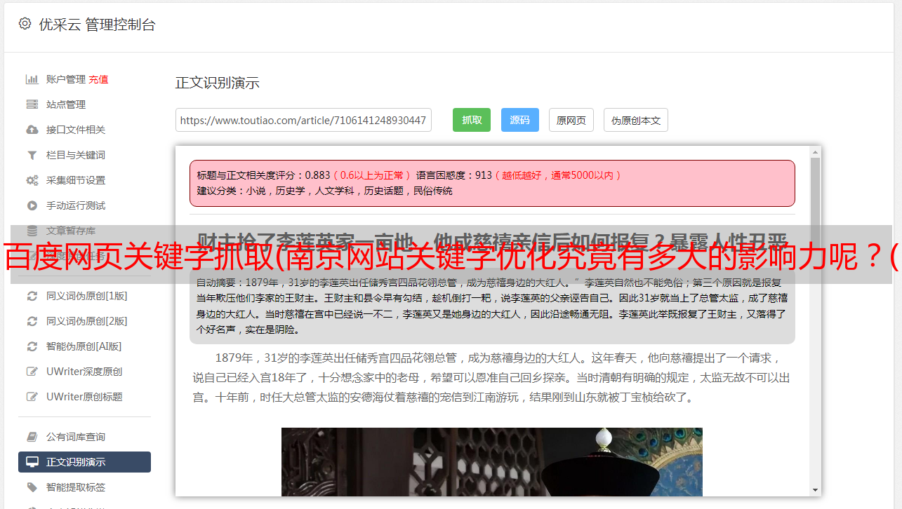 优采云 发布时间: 2022-01-30 06:10百度网页关键字抓取(南京网站关键字优化究竟有多大的影响力呢?(图)