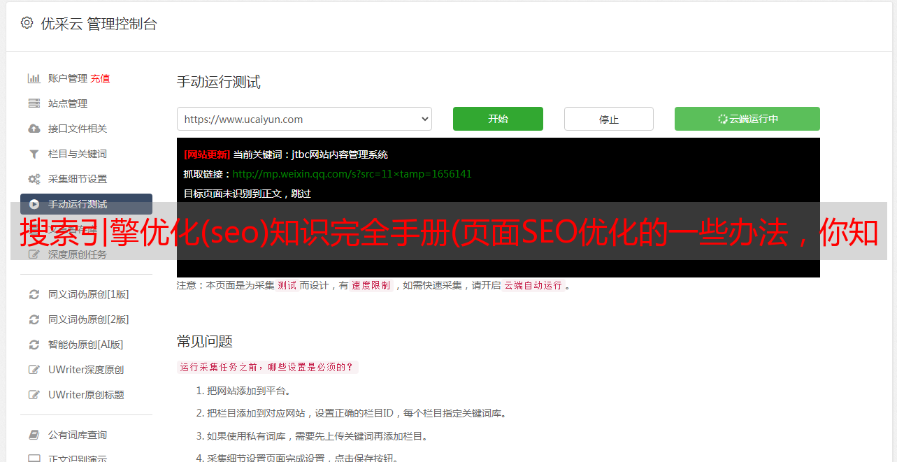 优采云 发布时间: 2022-01-30 07:19搜索引擎优化(seo)知识完全手册(页面SEO优化的一些办法,你知道吗?(一))