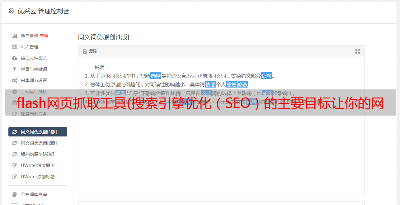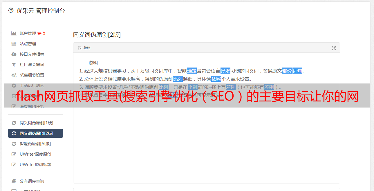flash网页抓取工具(搜索引擎优化(SEO)的主要目标让你的网站内容尽可能地出现在搜索结果靠前位置 )