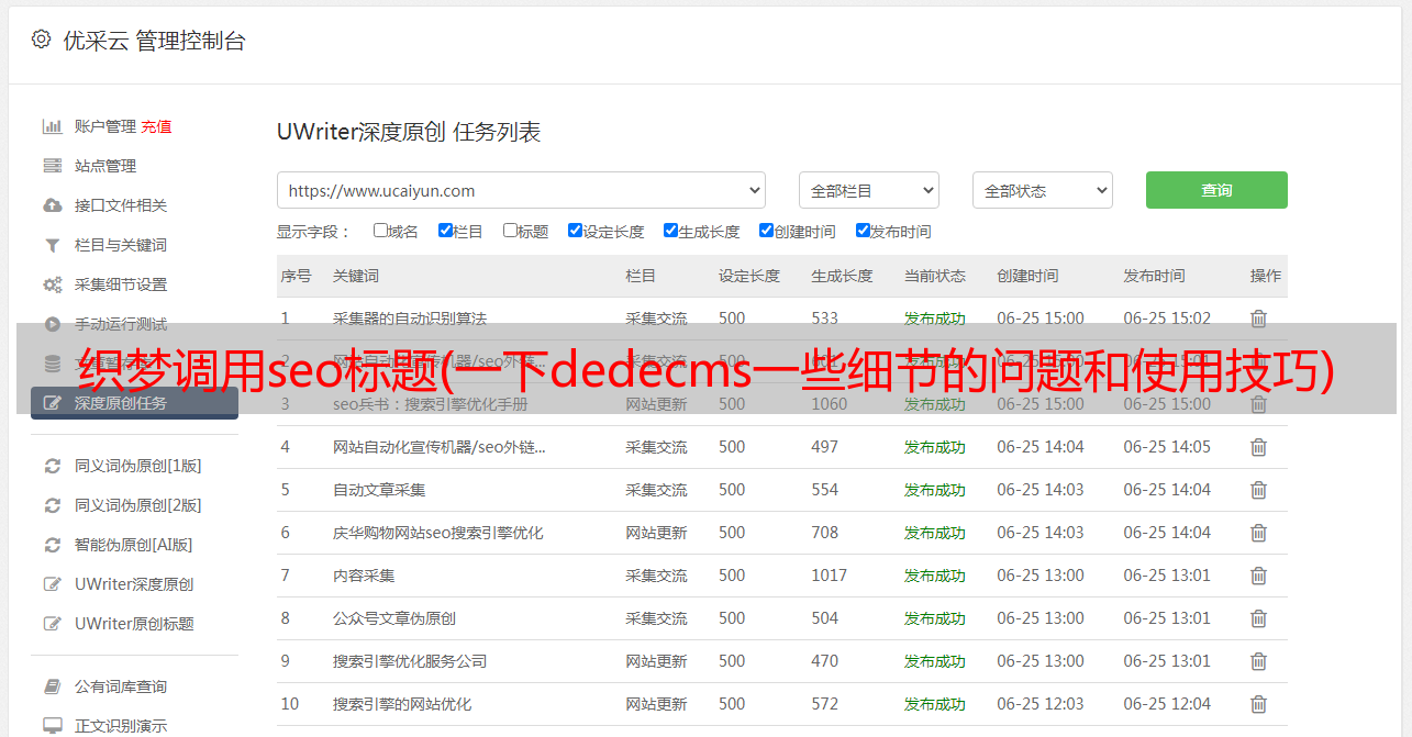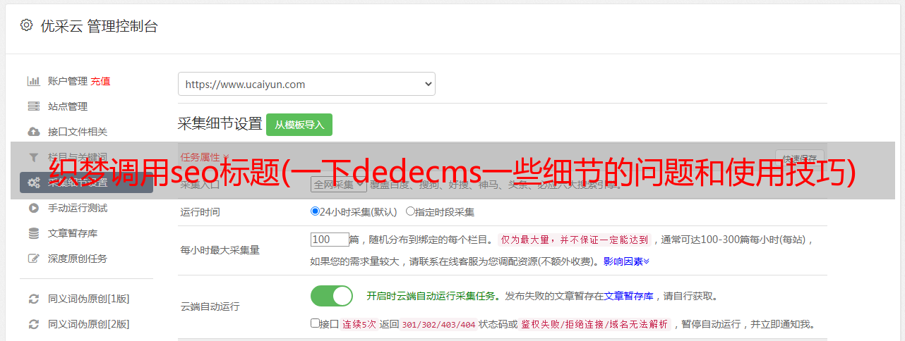 优采云 发布时间: 2022-01-30 11:03织梦调用seo标题(一下dedecms一些细节的问题和使用技巧)