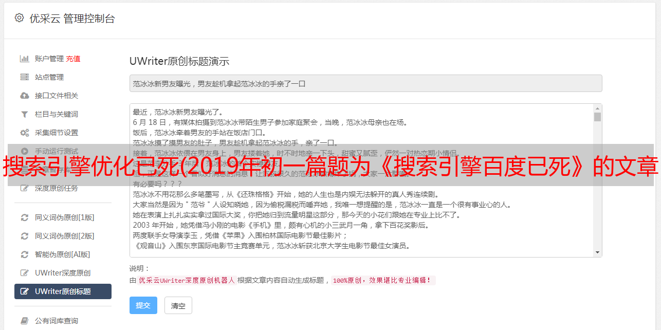 优采云 发布时间: 2022-01-30 11:18搜索引擎优化已死(2019年初一篇题为《搜索引擎百度已死》的文章作者指出
