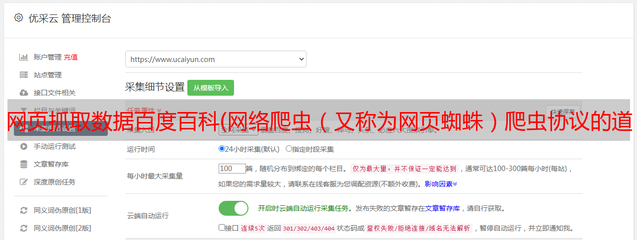 优采云 发布时间: 2022-01-30 12:01网页抓取数据百度百科(网络爬虫(又称为网页蜘蛛)爬虫协议的道德标准