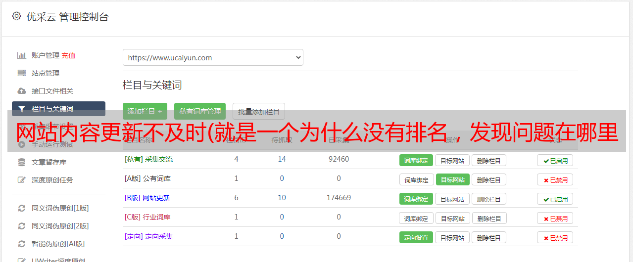 优采云 发布时间: 2022-01-30 14:09网站内容更新不及时(就是一个为什么没有排名,发现问题在哪里了呢?)