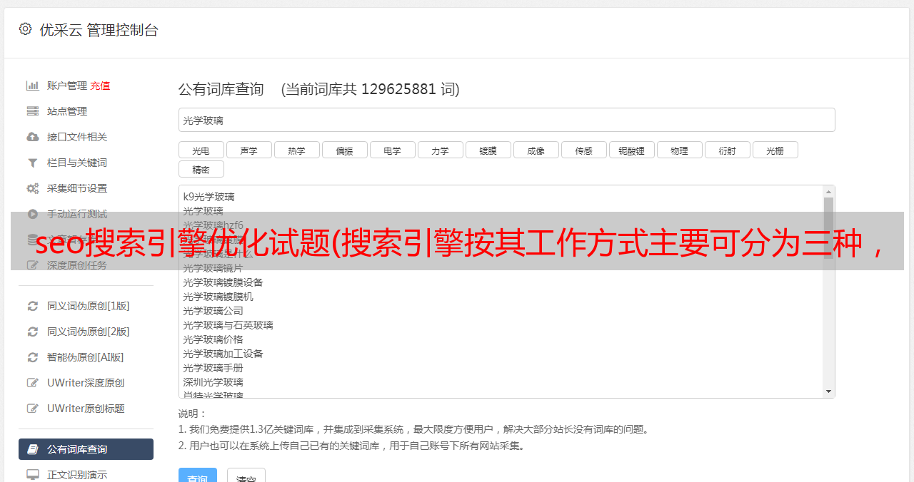 优采云 发布时间: 2022-01-30 19:15seo搜索引擎优化试题(搜索引擎按其工作方式主要可分为三种,你知道吗?)