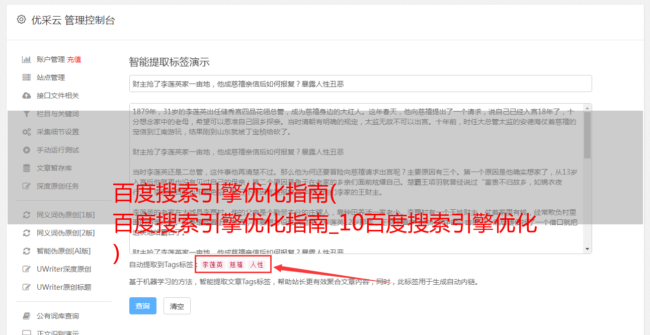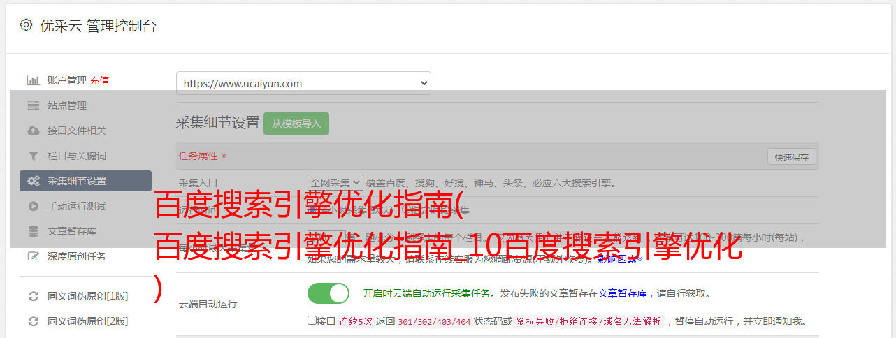 优采云 发布时间: 2022-01-31 00:18百度搜索引擎优化指南(