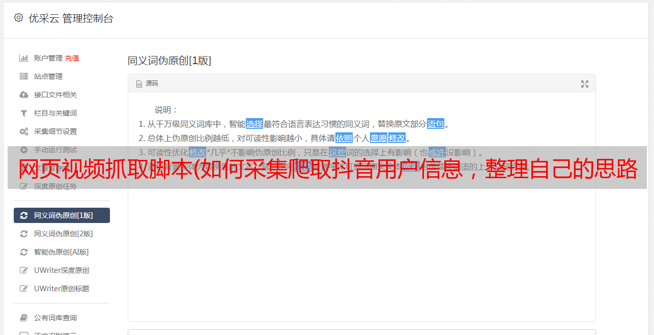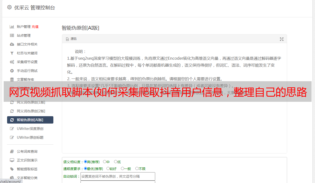 优采云 发布时间: 2022-01-31 04:11网页视频抓取脚本(如何采集爬取抖音用户信息,整理自己的思路?)