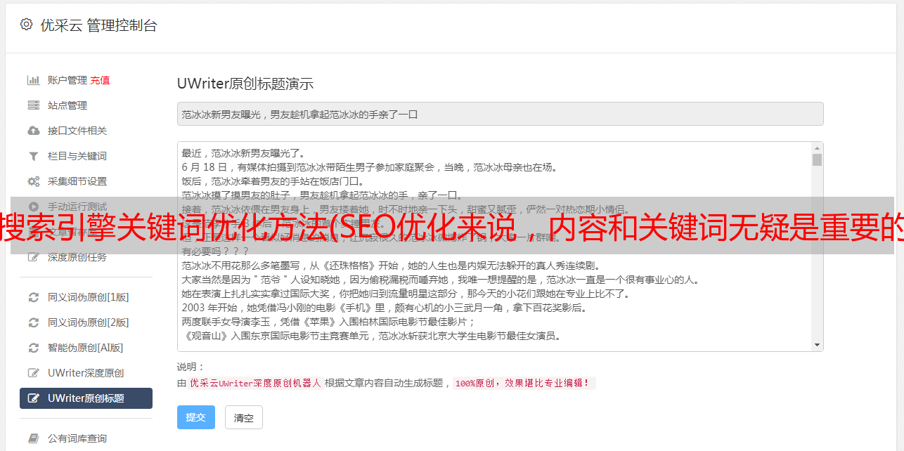 优采云 发布时间: 2022-01-31 13:17搜索引擎关键词优化方法(SEO优化来说,内容和关键词无疑是重要的两个部分
