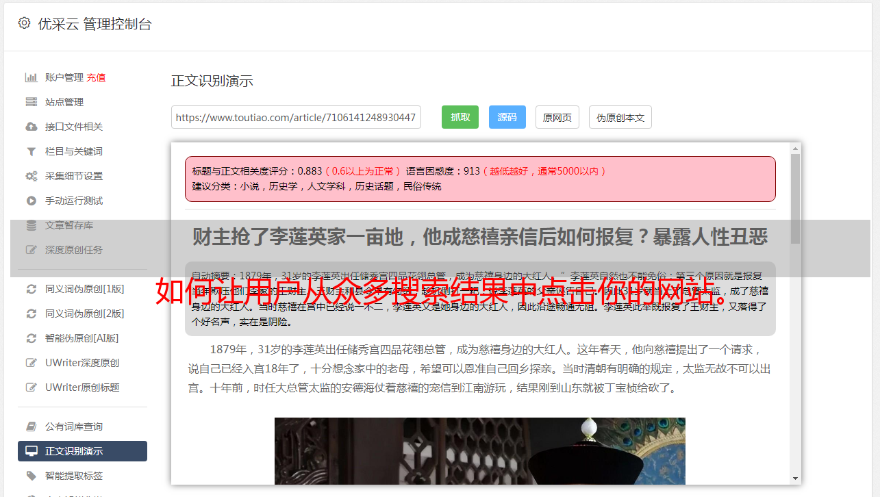 •网站内容的构建侧重于服务网站的核心价值,提供给搜索引擎收录的内容也应该是有助于其核心价值的内容。内容构建应符合网站的主题。例如,如果您的网站是it新闻网站,请不要放很多漂亮的女人的照片。除了浪费服务器资源之外,网站的核心价值也没有。帮助,看过精美图片的人不会对此新闻感兴趣。