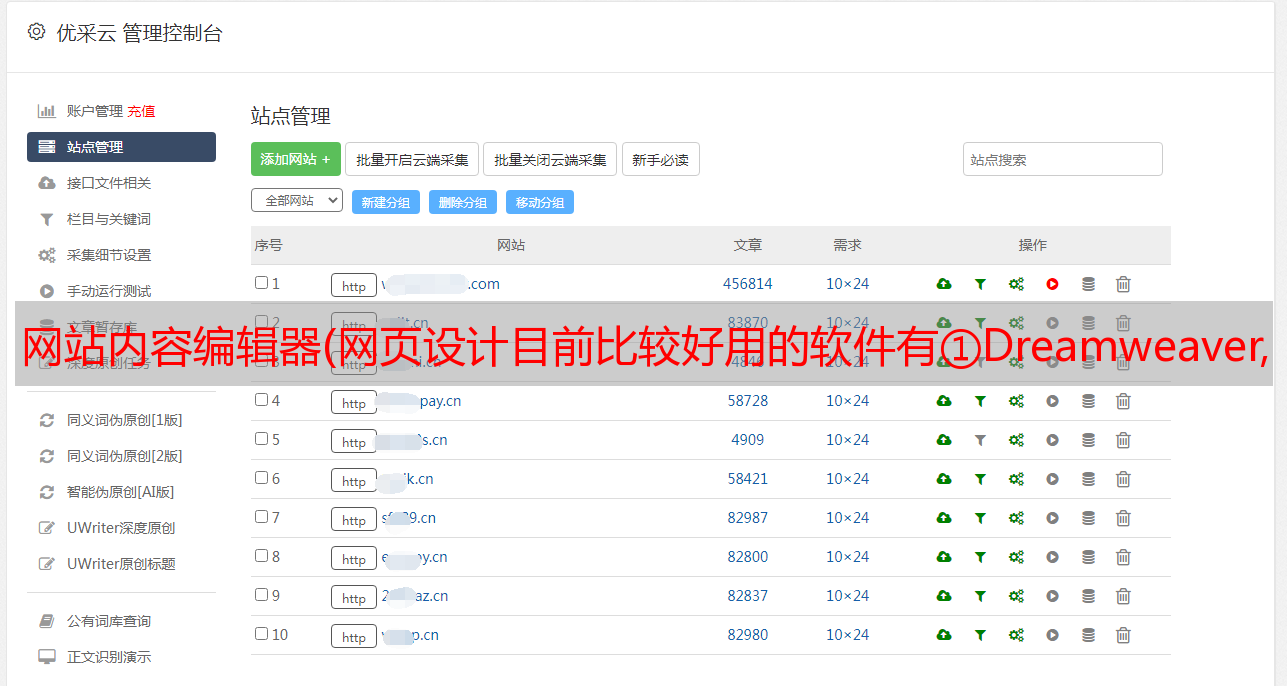 优采云 发布时间: 2022-02-01 00:20网站内容编辑器(网页设计目前比较好用的软件有①Dreamweaver,简称DW
