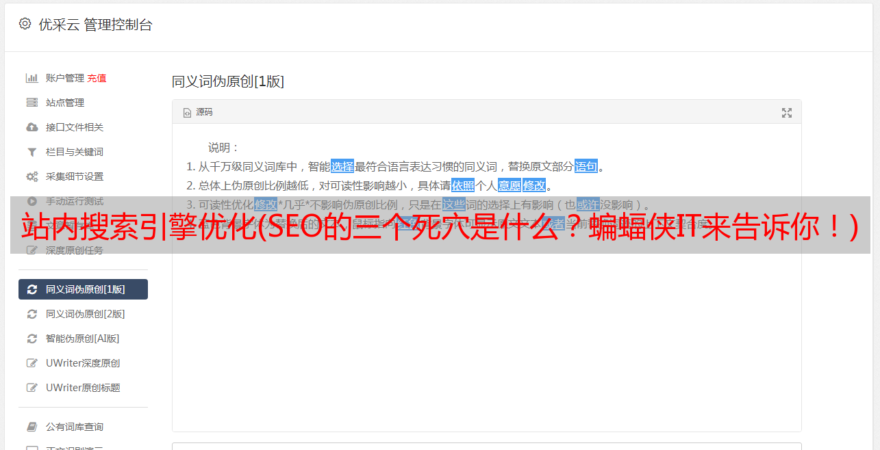 优采云 发布时间: 2022-02-01 01:21站内搜索引擎优化(SEO的三个死穴是什么?蝙蝠侠IT来告诉你!)