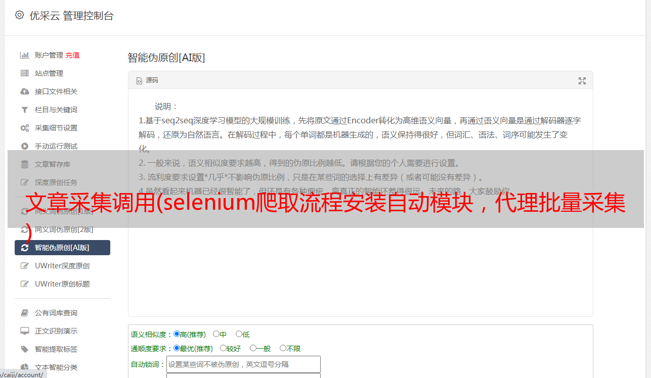 文章采集调用(selenium爬取流程安装自动模块,代理批量采集 )