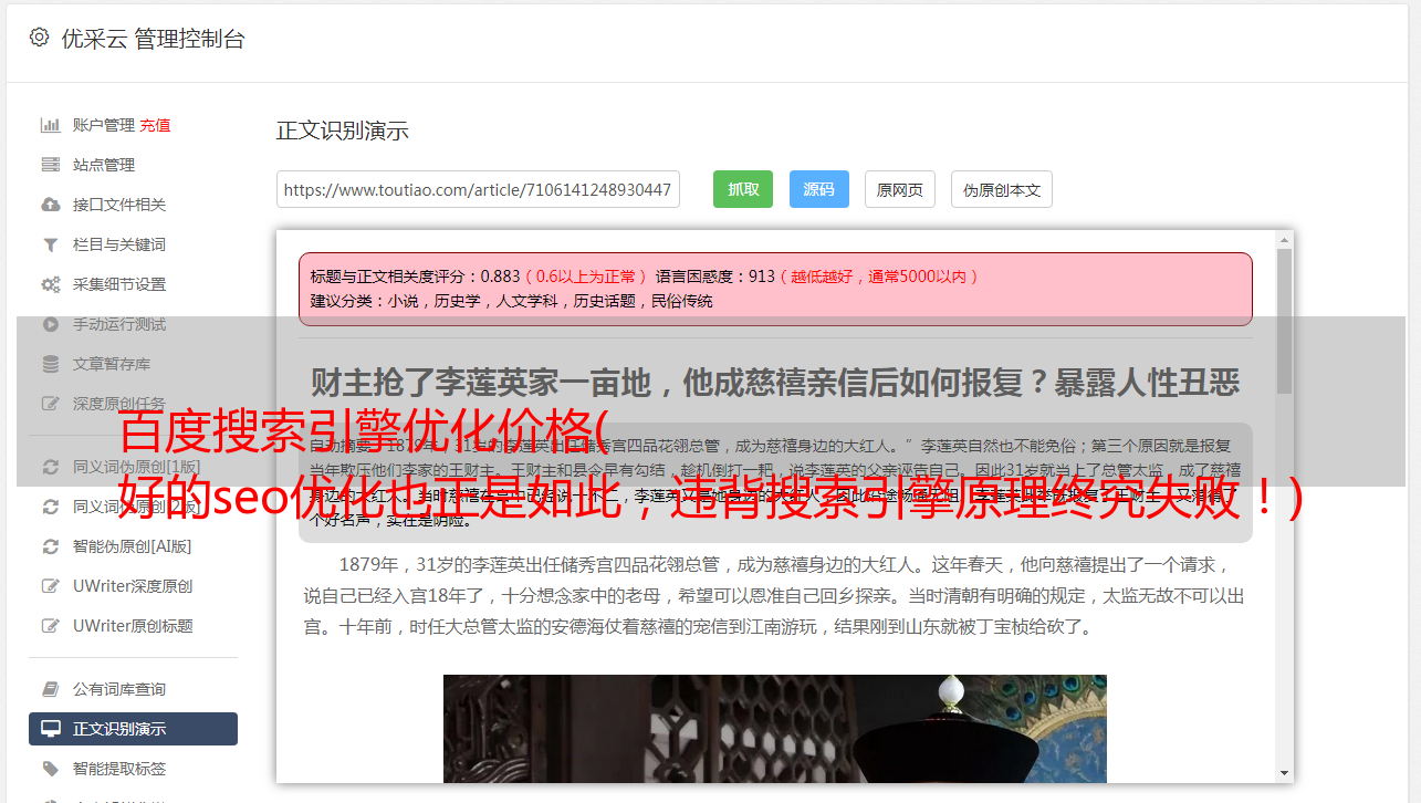 百度搜索引擎优化价格( 好的seo优化也正是如此,违背搜索引擎原理终究失败!)