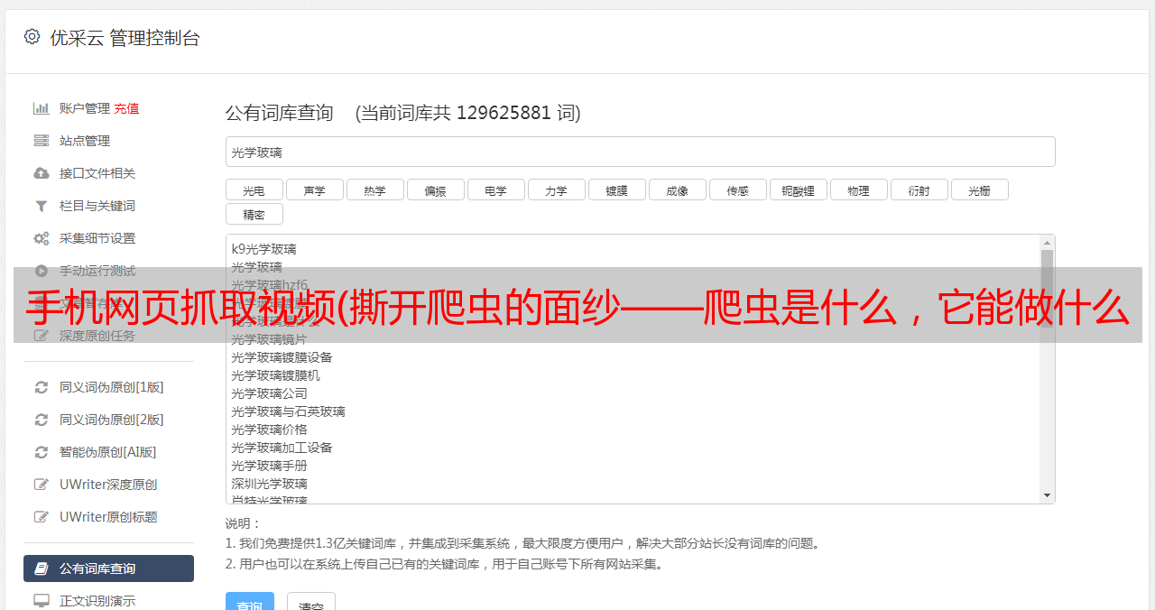优采云 发布时间: 2022-02-01 07:08手机网页抓取视频(撕开爬虫的面纱——爬虫是什么,它能做什么爬虫)