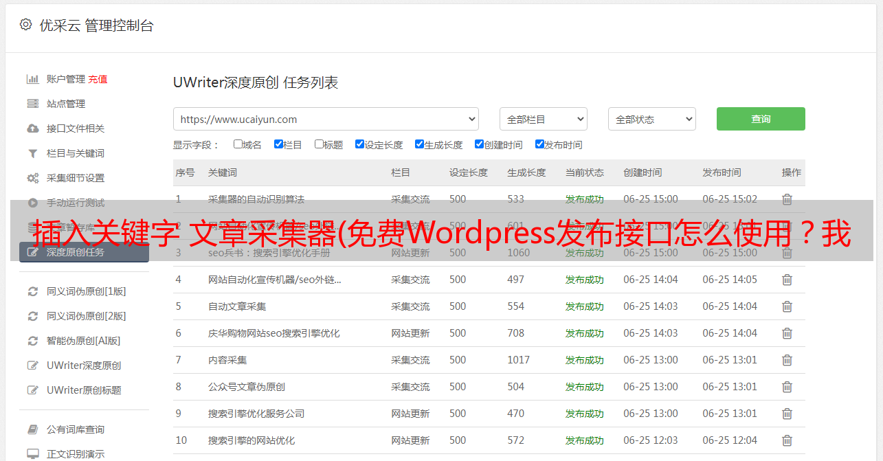 templates原创degree) - 选择标题是否与插入的关键词一致(增加文章与主题行业的相关性)搜索引擎推送(发布后自动推送到搜索引擎< @文章 增加 文章 @网站收录)!同时,除了wordpresscms之外,还支持cms网站和伪原创8@>采集伪原创。