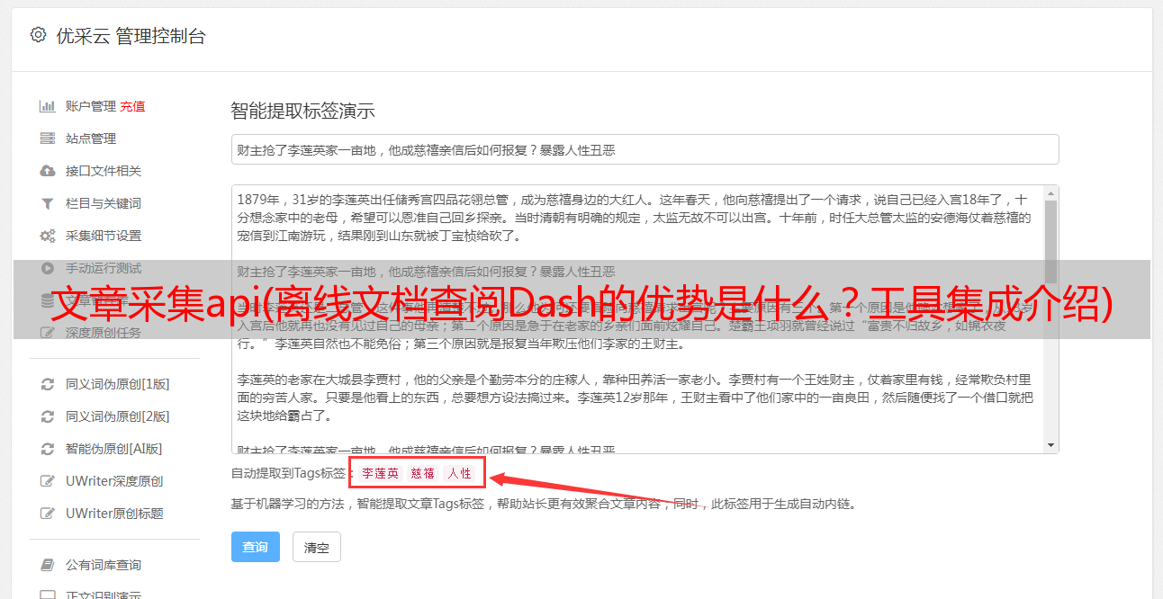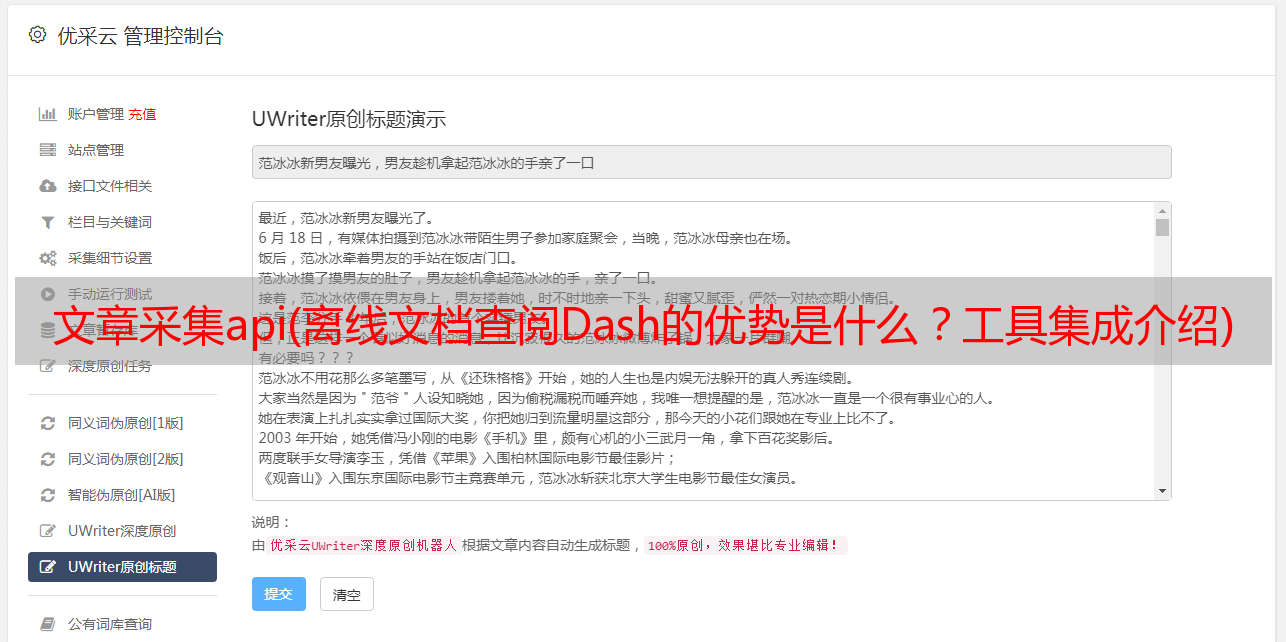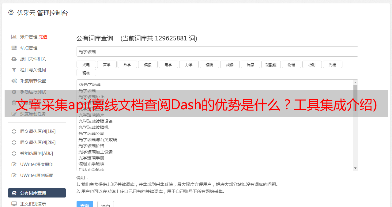 优采云 发布时间: 2022-02-01 16:09文章采集api(离线文档查阅Dash的优势是什么?工具集成介绍)