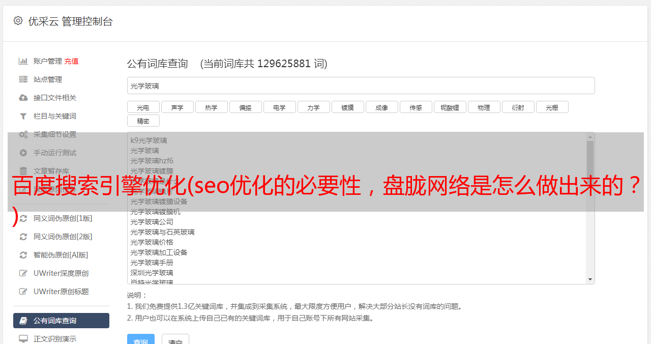 优采云 发布时间: 2022-02-01 17:13百度搜索引擎优化(seo优化的必要性,盘胧网络是怎么做出来的?