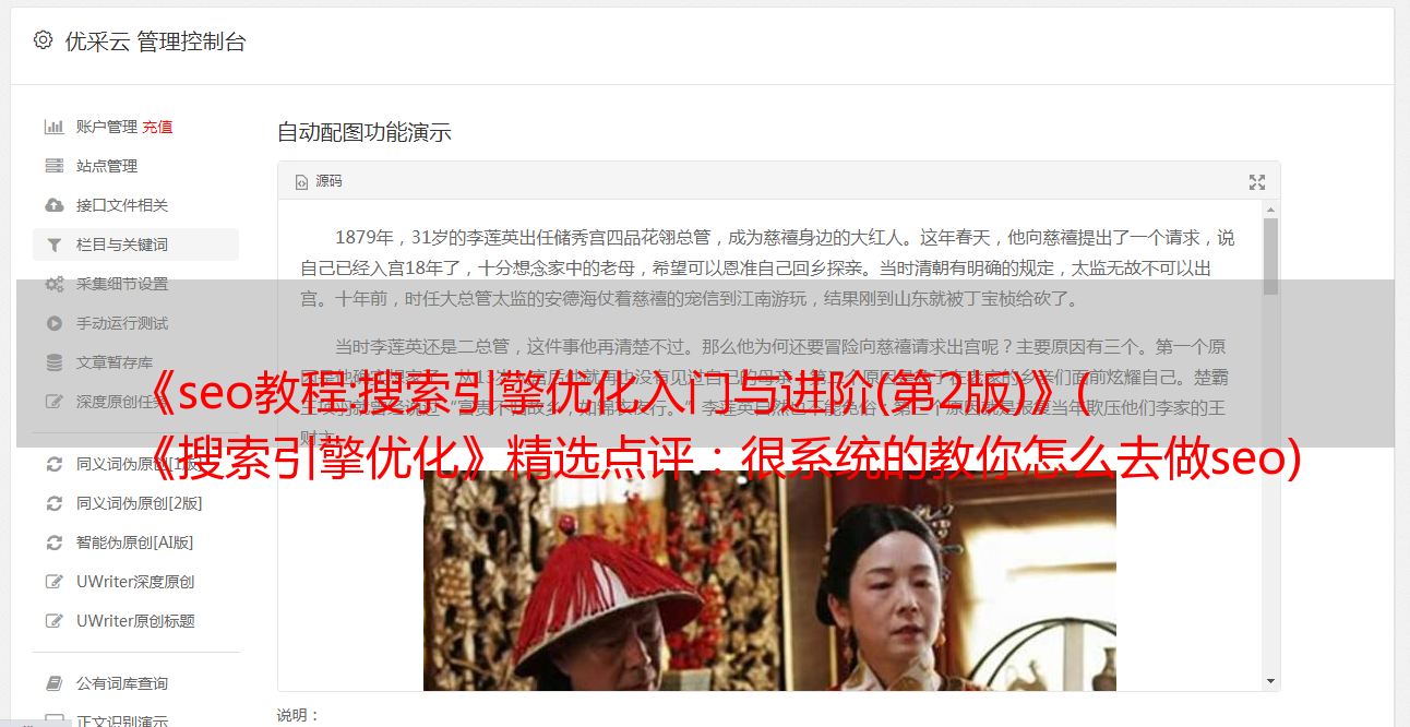 优采云 发布时间: 2022-02-01 17:15《seo教程:搜索引擎优化入门与进阶(第2版)》(