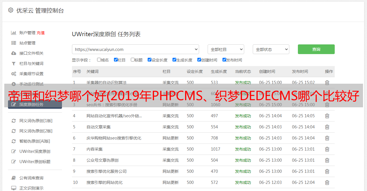 优采云 发布时间: 2022-02-02 00:07帝国和织梦哪个好(2019年PHPCMS、织梦DEDECMS哪个比较好用?PHP开源)