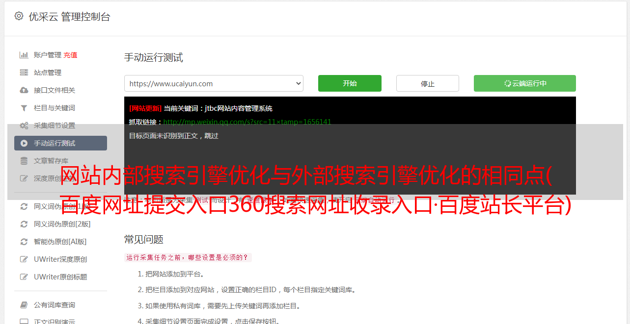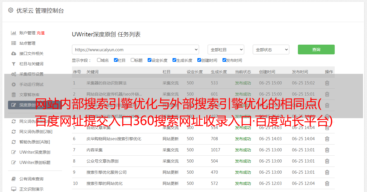 优采云 发布时间: 2022-02-02 14:21网站内部搜索引擎优化与外部搜索引擎优化的相同点(