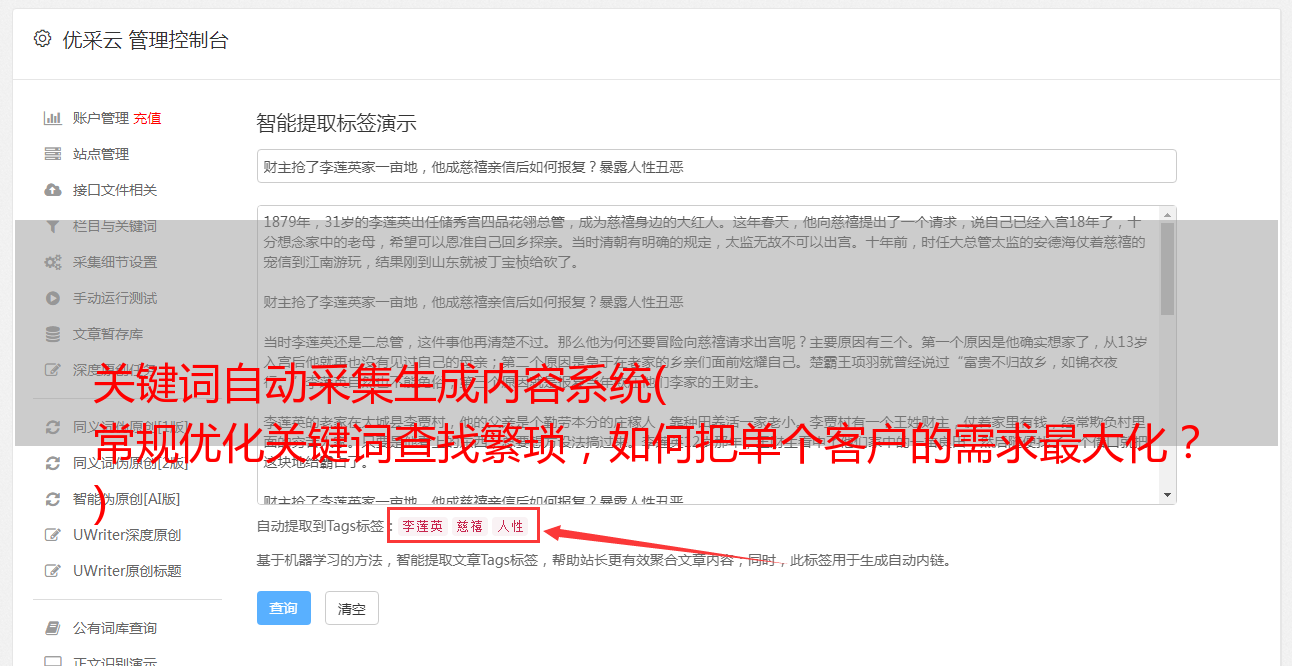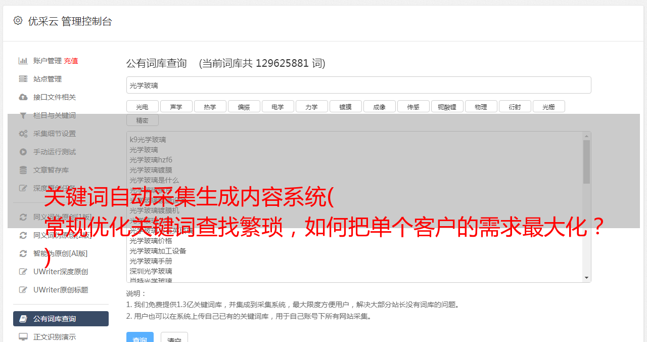 关键词自动采集生成内容系统( 常规优化关键词查找繁琐,如何把单个客户的需求最大化? )