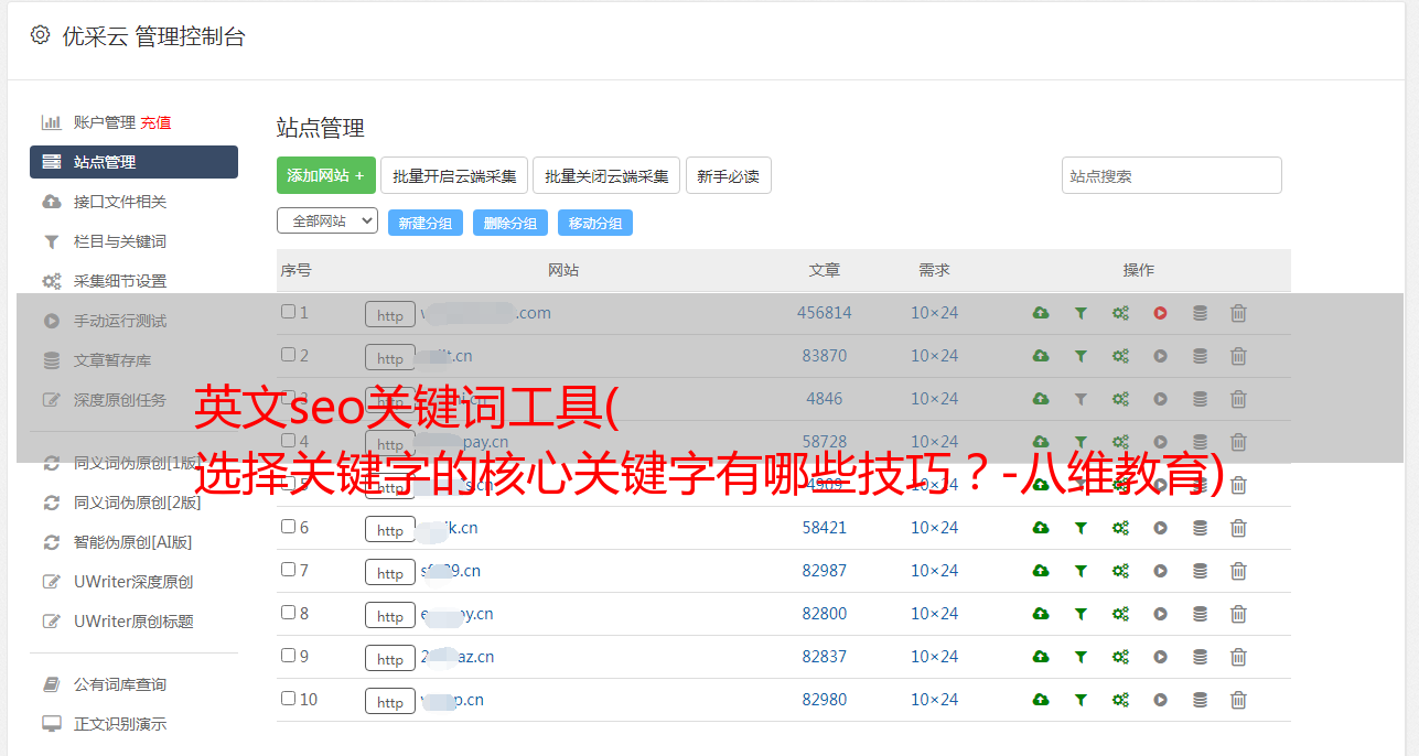 优采云 发布时间: 2022-02-02 20:06英文seo关键词工具(