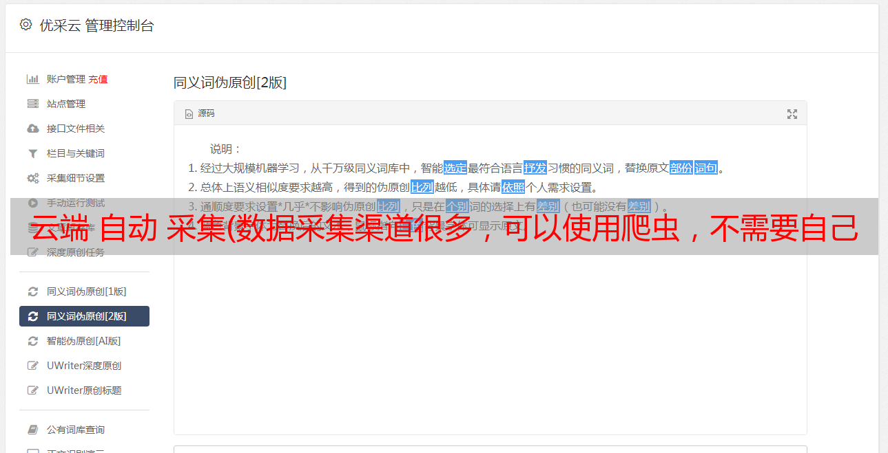 优采云 发布时间: 2022-02-03 00:02云端 自动 采集(数据采集渠道很多,可以使用爬虫,不需要自己爬取)
