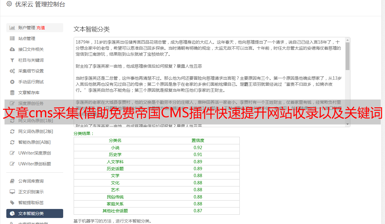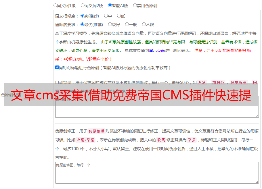 文章cms采集(借助免费帝国CMS插件快速提升网站收录以及关键词排名! )