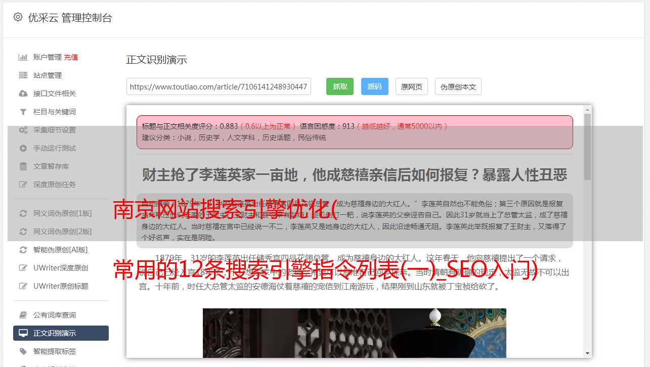 最后,即使您不了解 SEO,也可以使用一些说明。这是什么,这是一个命令。inurl:这是什么意思?是指网页的url中收录的查询词。表达式形式:inurl:+通配符+关键词。例如: inurl:bbs 我喜欢你 下面是收录这个我喜欢你的页面。
