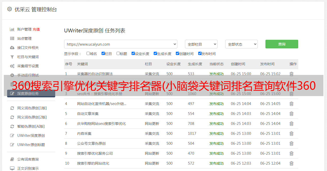 360搜索引擎优化关键字排名器(小脑袋关键词排名查询软件360PC版是一款网站优化工具)