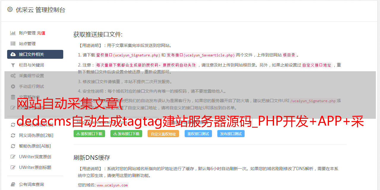 dedecms自动生成tagtag建站服务器源码_PHP开发+APP+采集接口)