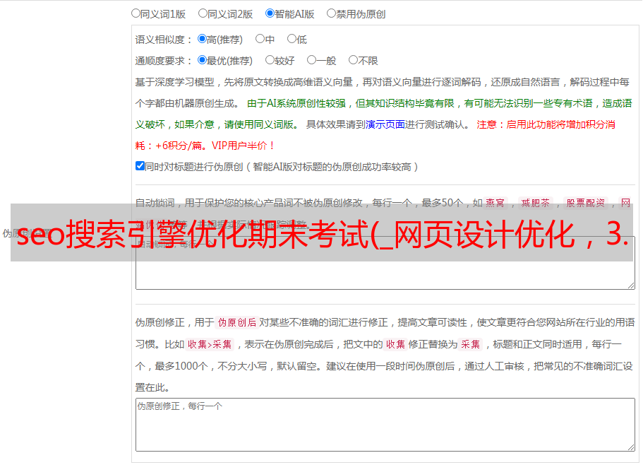 seo搜索引擎优化期末考试(_网页设计优化,3.6、站群的seo优化技巧 )