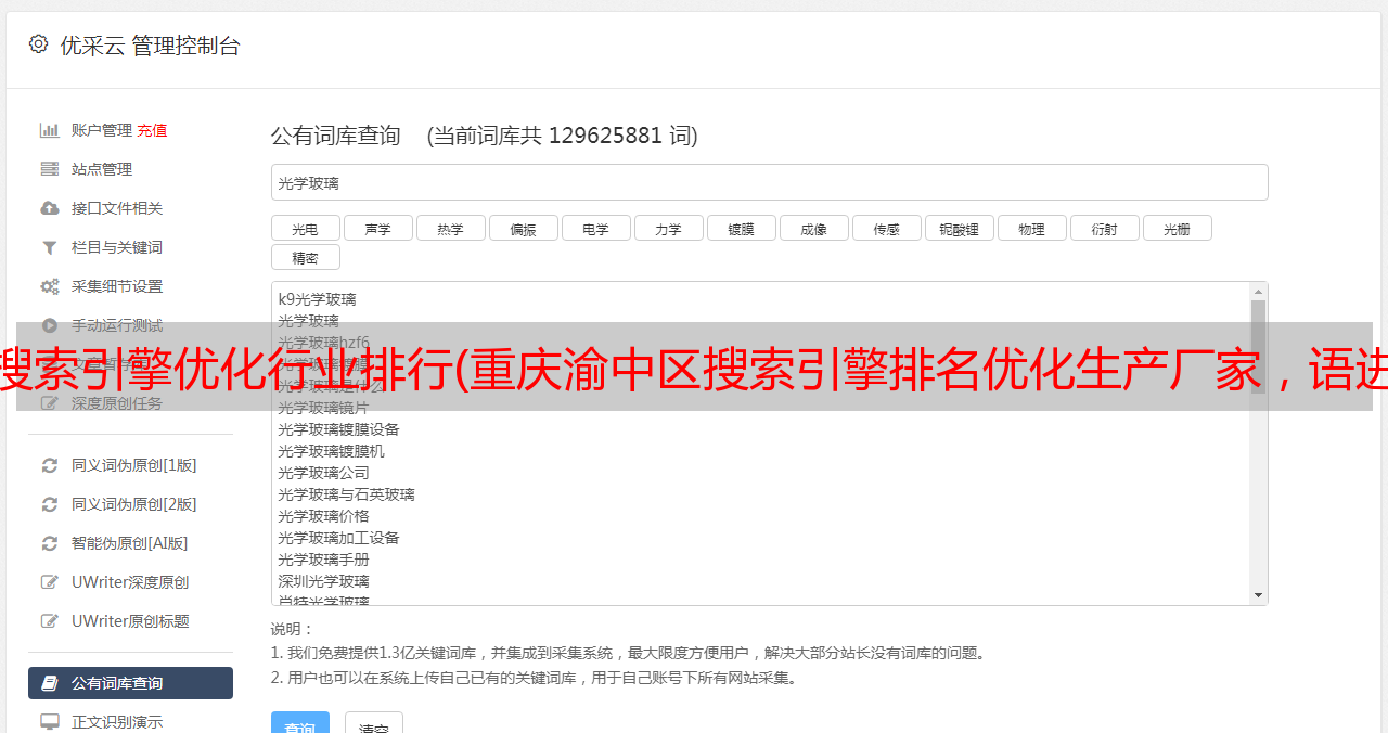 优采云 发布时间: 2022-02-03 15:15搜索引擎优化行业排行(重庆渝中区搜索引擎排名优化生产厂家,语进入速排名刷百度360