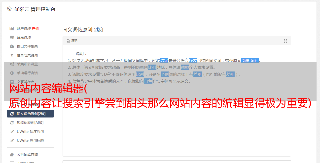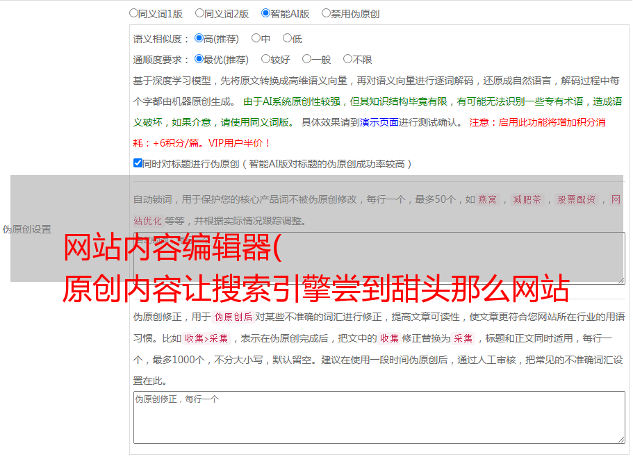 原创内容让搜索引擎尝到甜头那么网站内容的编辑显得极为重要)