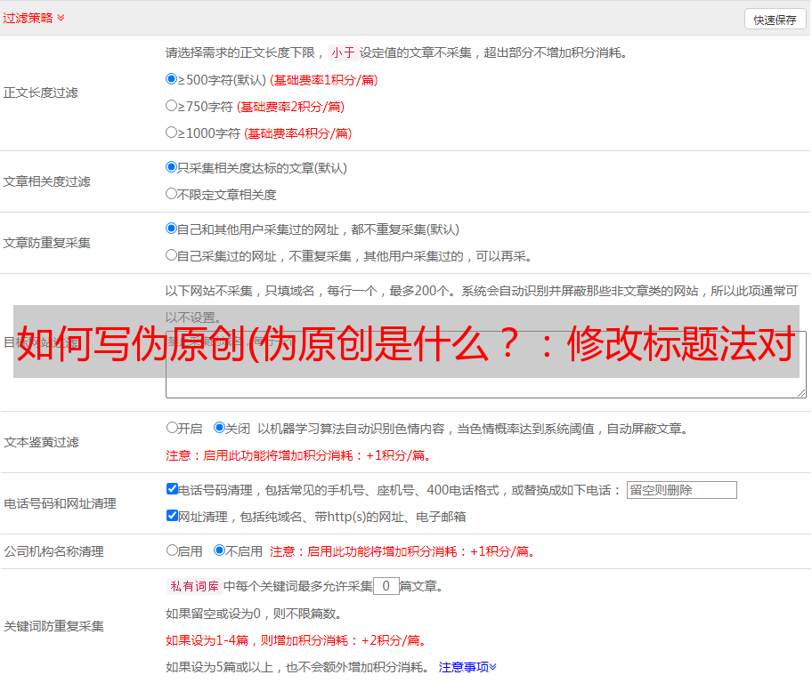 伪原创,顾名思义,就是对一个文章进行重新处理,让搜索引擎认为它是一个原创@>文章,从而增加网站的权重。创建一个伪原创是一个技术含量很高的事情,它不是其他相关文章的完整摘录,所以在进行伪原创之前你必须先端正自己的创作态度。