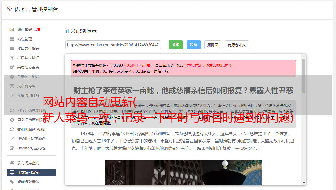 网站内容自动更新( 新人菜鸟一枚,记录一下平时写项目时遇到的问题)