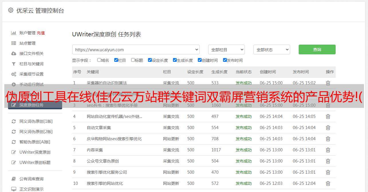 伪原创工具在线(佳亿云万站群关键词双霸屏营销系统的产品优势!(组图))