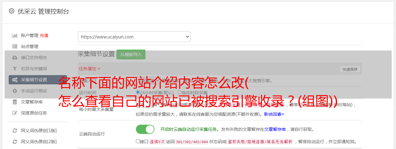 注意:收录期间,建议稳定后台关键词等词汇和域名打开方式,保证页面打开和词汇的稳定性。