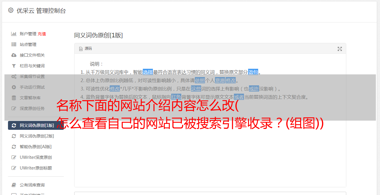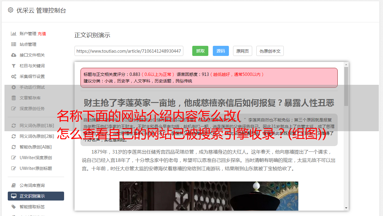 名称下面的网站介绍内容怎么改( 怎么查看自己的网站已被搜索引擎收录?(组图))