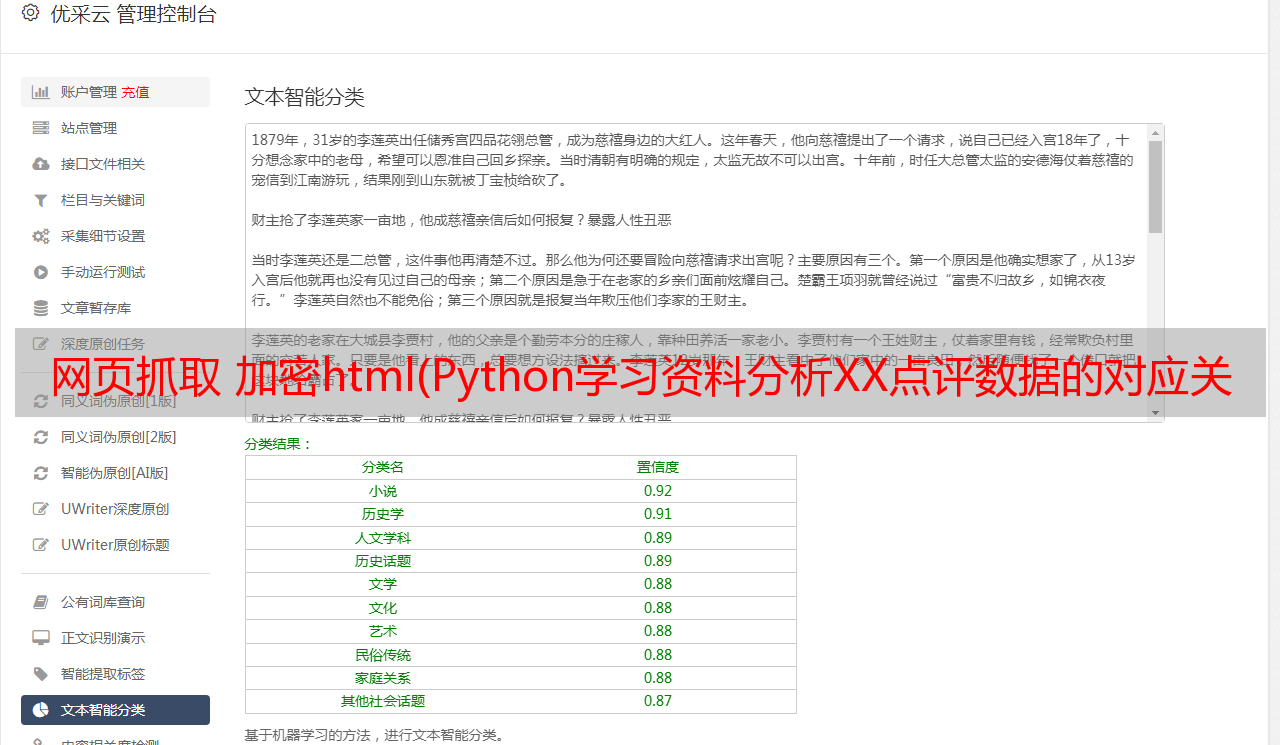 优采云 发布时间: 2022-02-04 07:07网页抓取 加密html(Python学习资料分析XX点评数据的对应关系及乱码与数字)