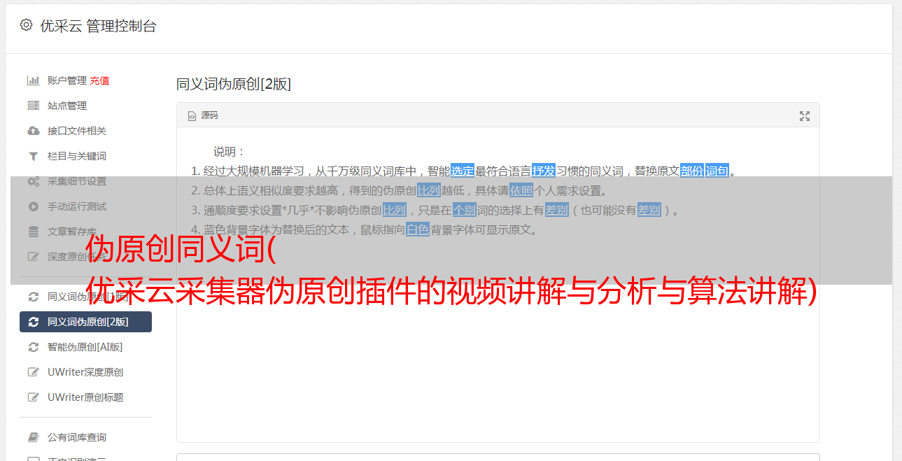 伪原创同义词( 优采云采集器伪原创插件的视频讲解与分析与算法讲解)