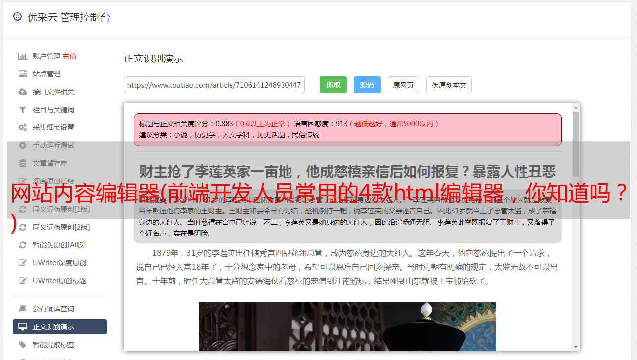 优采云 发布时间: 2022-02-04 12:04网站内容编辑器(前端开发人员常用的4款html编辑器,你知道吗?