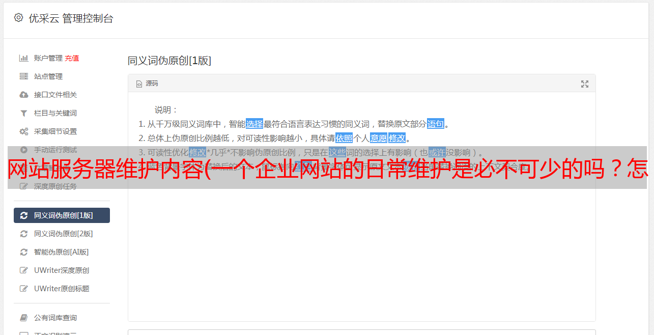 优采云 发布时间: 2022-02-04 14:25网站服务器维护内容(一个企业网站的日常维护是必不可少的吗?怎么做?