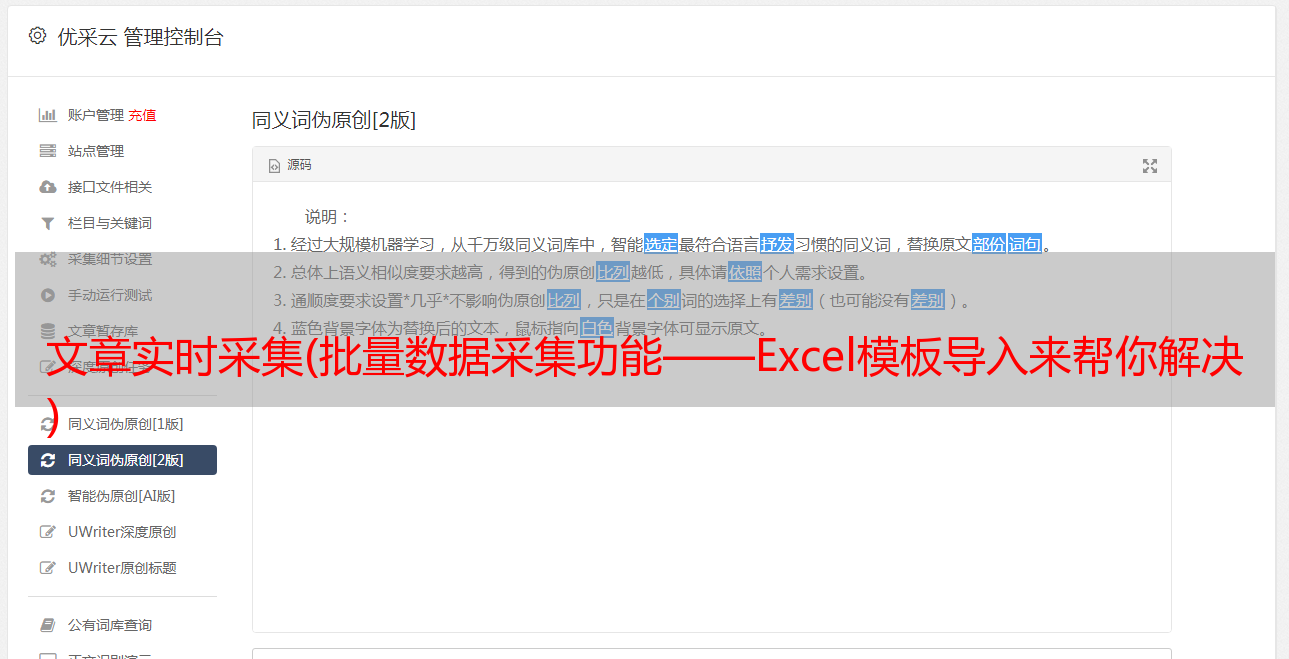 文章实时采集(批量数据采集功能——Excel模板导入来帮你解决 )