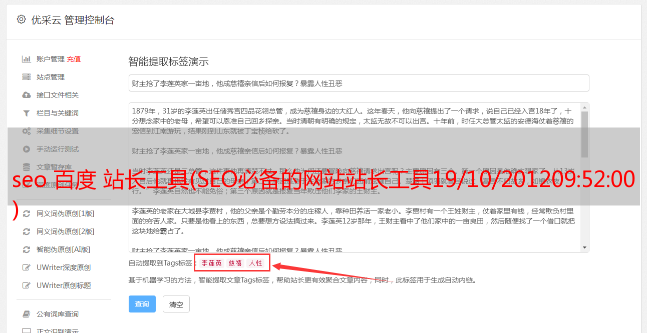 站长工具添加seo关键词库功能