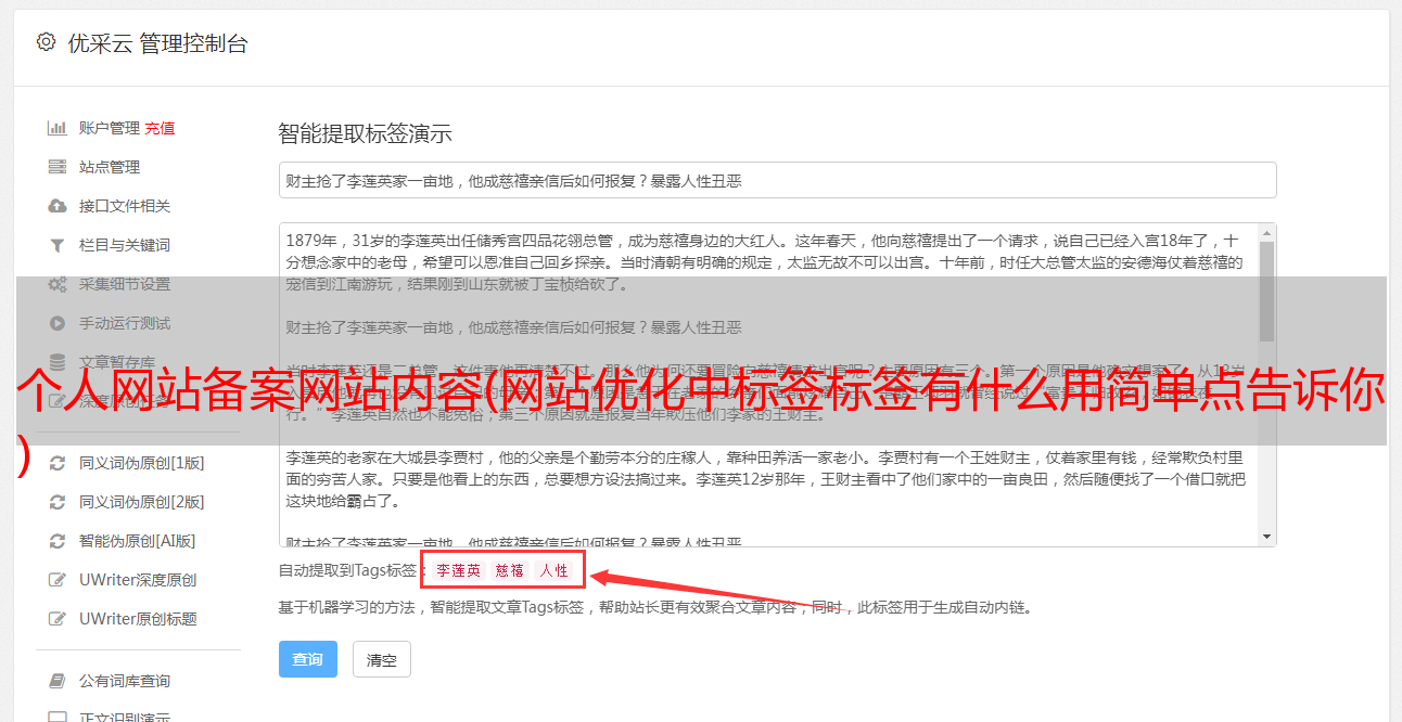 优采云 发布时间: 2022-02-04 18:10个人网站备案网站内容(网站优化中标签标签有什么用简单点告诉你