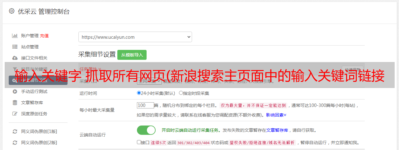 优采云 发布时间: 2022-02-05 02:02输入关键字 抓取所有网页(新浪搜索主页面中的输入关键词链接和计算相似度)