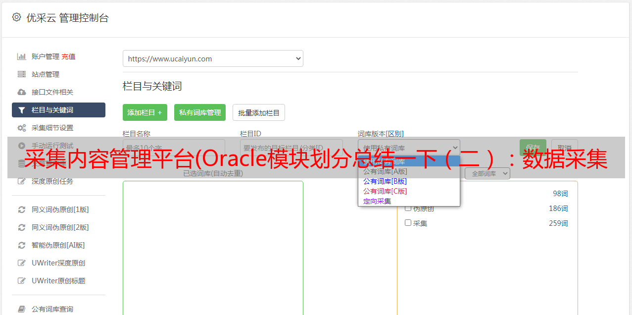 优采云 发布时间: 2022-02-05 03:10采集内容管理平台(Oracle模块划分总结一下(二):数据采集、规则解析)