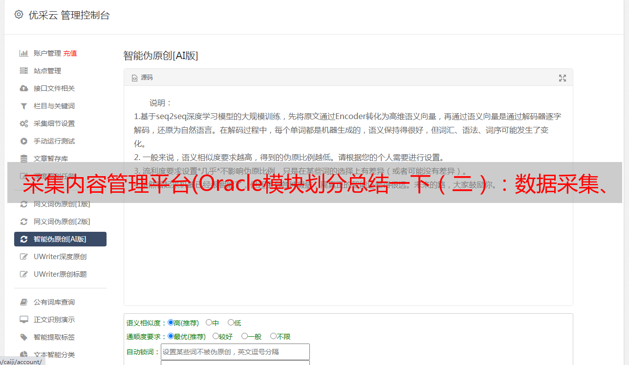 采集内容管理平台(Oracle模块划分总结一下(二):数据采集、规则解析)